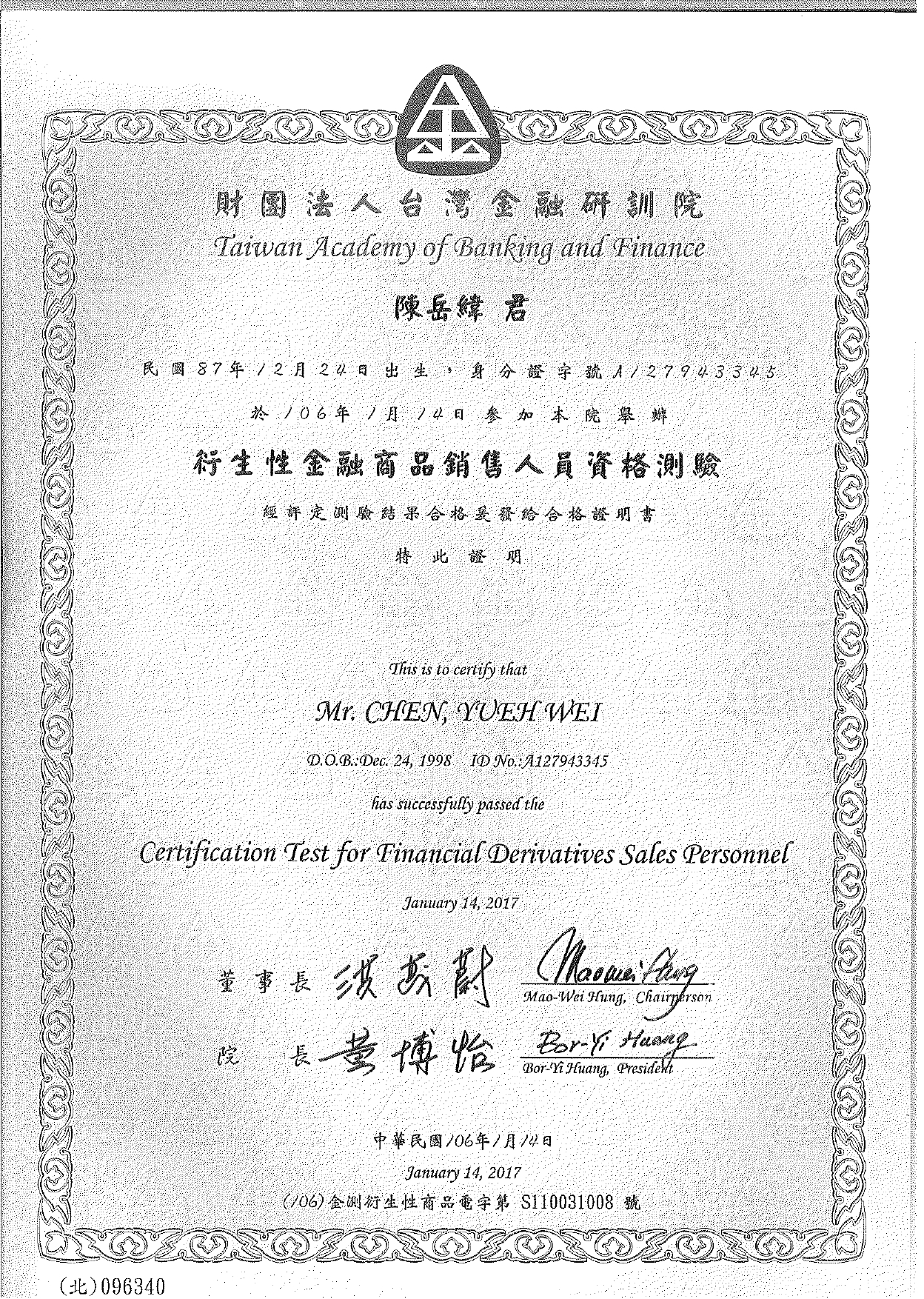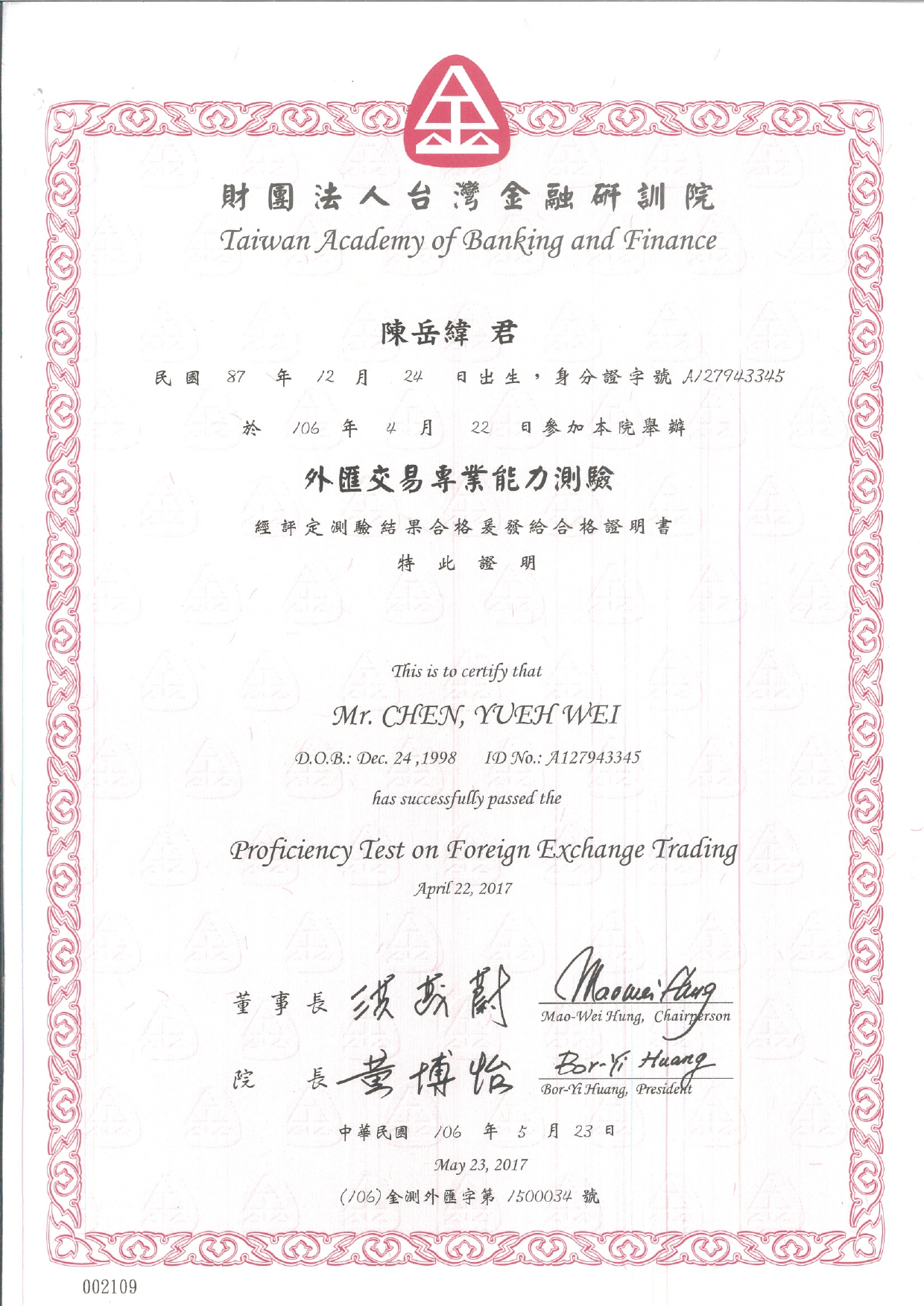 Certification of Proficiency Test for Foreign Exchange Transaction