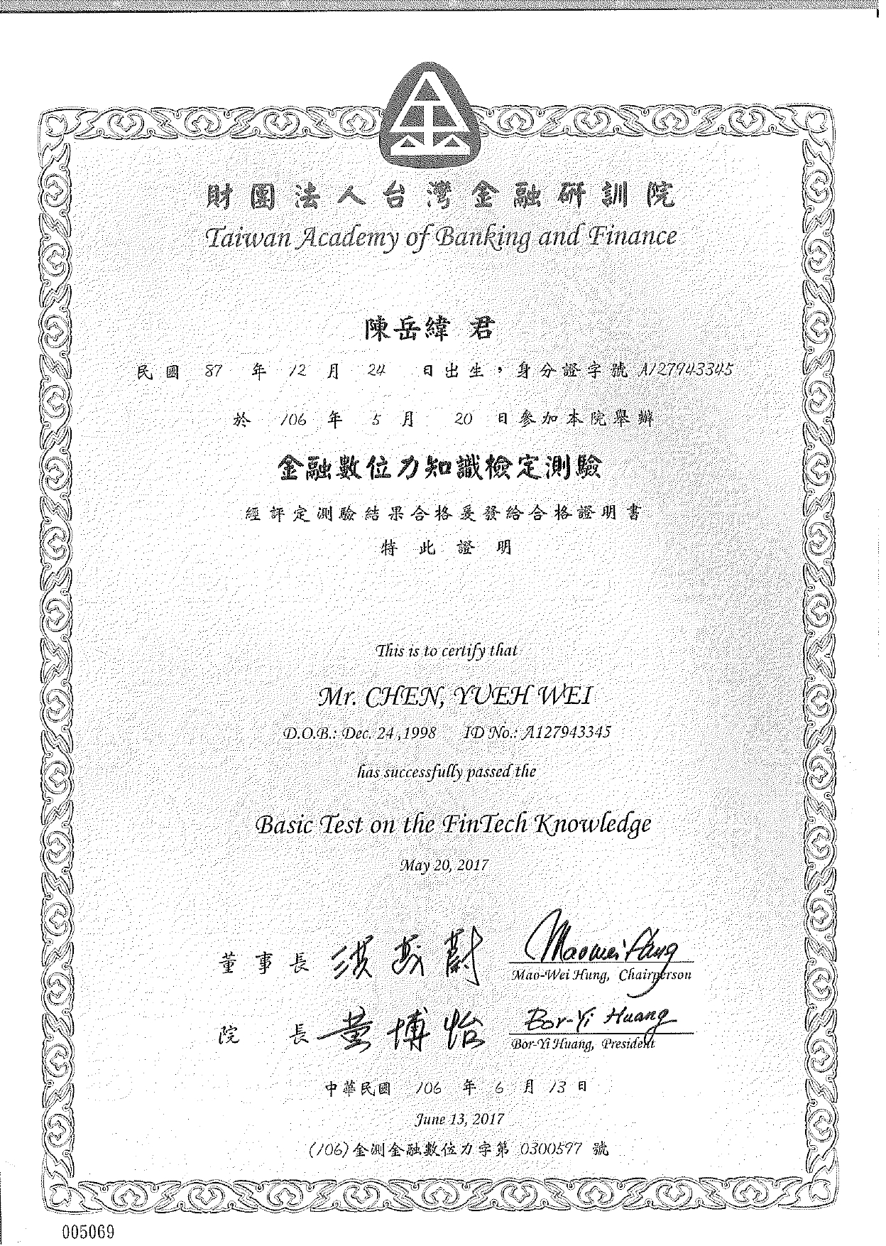 Certification of basic test for Fintech
